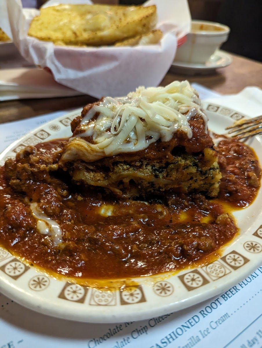 The menu is straightforward and unapologetically classic. Spaghetti with meat sauce is the headliner, served in portions that feel generous without being overwhelming. The sauce itself leans slightly sweet, slow-simmered, and smooth rather than chunky, which tells you it’s been refined over decades. During one visit, I watched the kitchen staff prepping sauce in large batches, a method often recommended by culinary professionals because it allows flavors to develop evenly and reduces variation between plates. Meatballs, ravioli, and lasagna round out the core offerings, and there are simple salads and garlic bread that complete the meal without distraction.